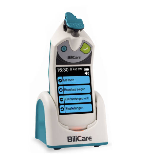 Das nicht-invasive, transkutane Bilirubinmessgerät für Neugeborene BiliCare™: Das BiliCare-System misst die Bilirubinwerte mittels einer patentierten Technologie, die präzise Ergebnisse garantiert und auf Verfahren der Spektroskopie beruht. Das System bestimmt den Wert des transkutanen Bilirubins beim Neugeborenen, in dem Licht in unterschiedlichen Wellenlängen durch das Außenohr gesendet wird. Anhand eines maßgeschneiderten Algorithmus berechnet das Gerät, wie viel Licht vom Bilirubin absorbiert wird.
