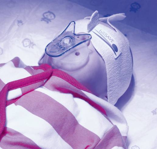 Das weiche, atmungsaktive Material und die Grifflaschen ermöglichen ein einfaches Justieren und sind, bis auf die lichtdichten Augenpads, durch- lässig für die Bestrahlung. Die Klettverschlüsse können individuell verstellt werden. biliSAVE® passt sich jeder Kopfform an und gewährleistet neben einem effektiven Schutz der Augen, eine größt- mögliche Bestrahlungsoberfläche.