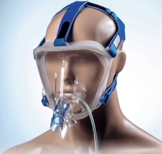 Gesichtsmaske der neuen Generation für die nicht-invasive mechanische Beatmung in den Techniken PSV, BILEVEL-BIPAP und CPAP.