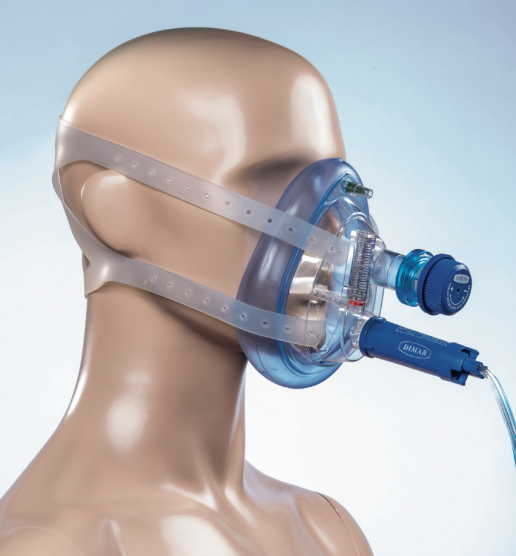 Maske Easy Vent CPAP-System zur Verabreichung von Luft-Sauerstoff -Gemischen mit hoher Flowraten für CPAP an Patienten mit Sauerstoff mangel aufgrund eines kardiogenen Ödems oder einer akuten respiratorischen Insuffizienz.Ausgestattet mit einer Venturi-Vorrichtung, die bis zu 120 l/min und eine variable FiO2 Zwischen 0,35 und 1 abgeben kann. Leichtes, praktisches und schnell anzulegendes Set, das im Rettungswagen, in der Notaufnahme und in den Normalstationen von Krankenhäusern zum Einsatz kommen kann, wenn nur eine Sauerstoff quelle verwendet wird (zentrales System oder Flasche).