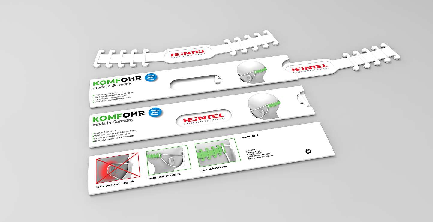 - Der Komfohr Maskenhalter entlastet die Ohren und verhindert daher jedes Druckgefühl rund um die Ohrmuschel.